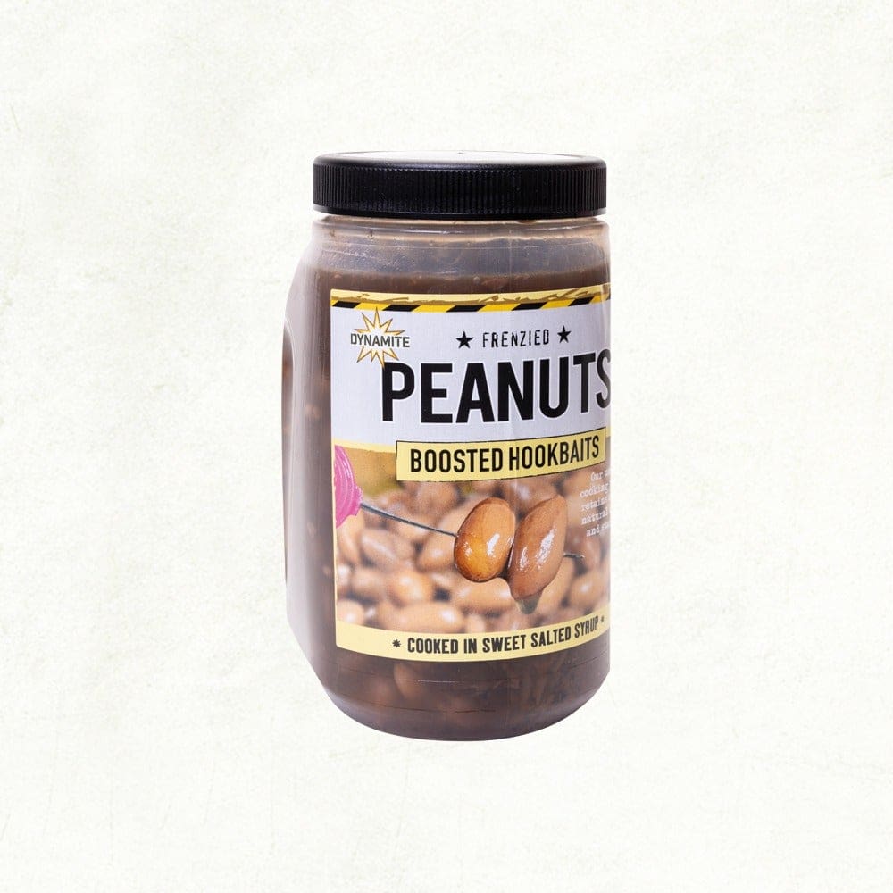 Peanuts – Premium whole peanuts perfectly prepared in a unique sweet and salty syrup, a proven carp loving bait. Perfect for using in conjunction with our hugely popular Frenzied Tigers or particle feeds, these hookbaits are cooked in the jar and come oozing in a fish-loving syrup to give them that extra boost to help you fool those wary monster carp. These hookbaits come in easy to carry 500ml sealable jars.