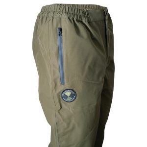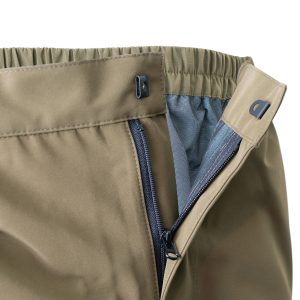 Trousers: Lightweight over trousers with elasticated waist, secure closure, zipped pockets, and boot zips for convenience.
