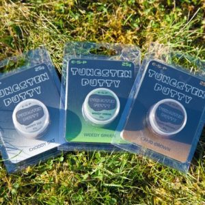 Available in weedy green, camo brown and choddy silt so the putty can be matched to the lake bed or the different colours can be moulded together to create a multi camouflage putty.