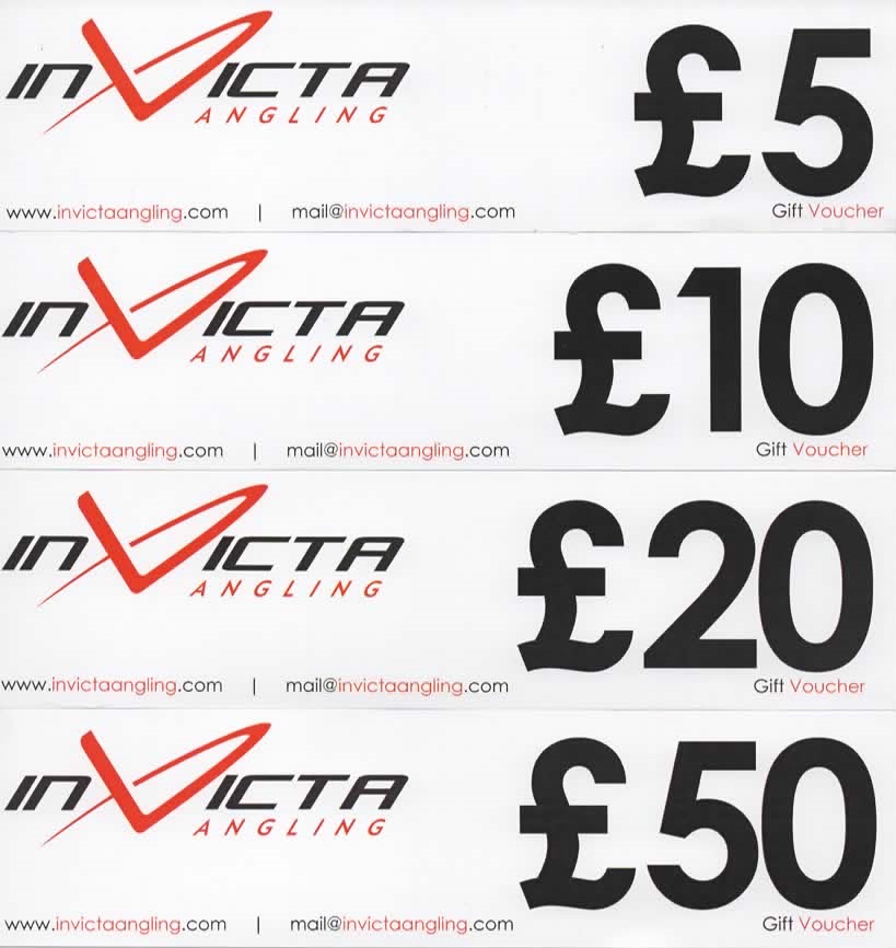| Invicta Angling Gift Vouchers | £10.00 Gift Voucher, £15.00 Gift Vocuher, £20.00 Gift Voucher, £25.00 Gift Voucher, £5.00 Gift Voucher, £50.00 Gift Voucher |