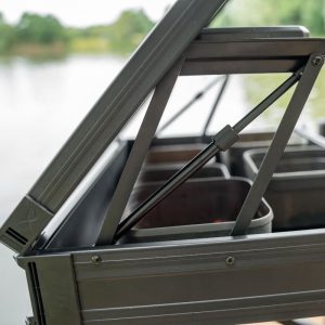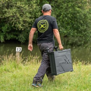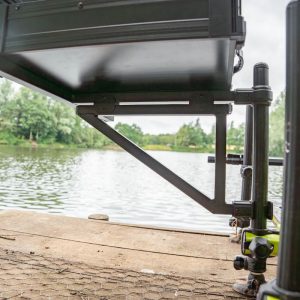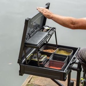 Matrix Pro Rigid Feeder Tray, a deep and wide side tray capable of housing 6 3.3pint bait tubs. With additional space provided by a collapsing shelf, ideal for any essential you want to keep to hand. Completely self supporting, with no additional legs required and a sturdy brace that holds in place with two knuckles. There are two secure sliding catches that keep everything firmly shut away for transport plus a moulded carry handle.