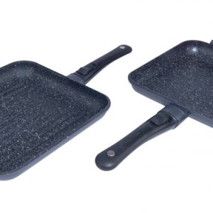 The set is ideal for large omelettes, pizzas, pastas, pies, fried breakfasts etc, it is also perfect when cooking for multiple people. Our all-new granite-style coating makes our pans tougher, more durable, and offers improved non-stick properties taking compact cookware to a whole new level.