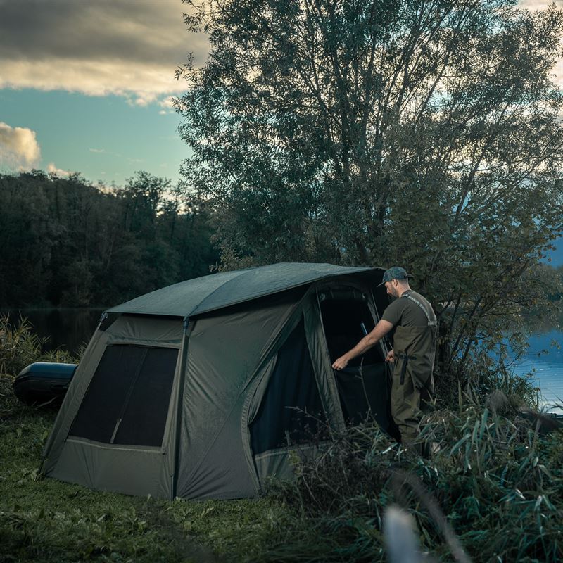 Trakker Tempest RS 200 Skull Cap, designed for the Tempest RS 200 Bivvy and giving you an extended peak plus additional protection from the weather. Manufactured from the same industry leading Aquatexx™ waterproof fabric. Offering both more shade from the sun, and a reduction in condensation build up on the inside of the shelter. They’re quick and easy to fit with built-in Skull Cap mounts on the shelters Rapid Knuckle System that align perfectly. With a pair of magnetic rod straps and supplied in a Aquatexx™ drawstring bag.